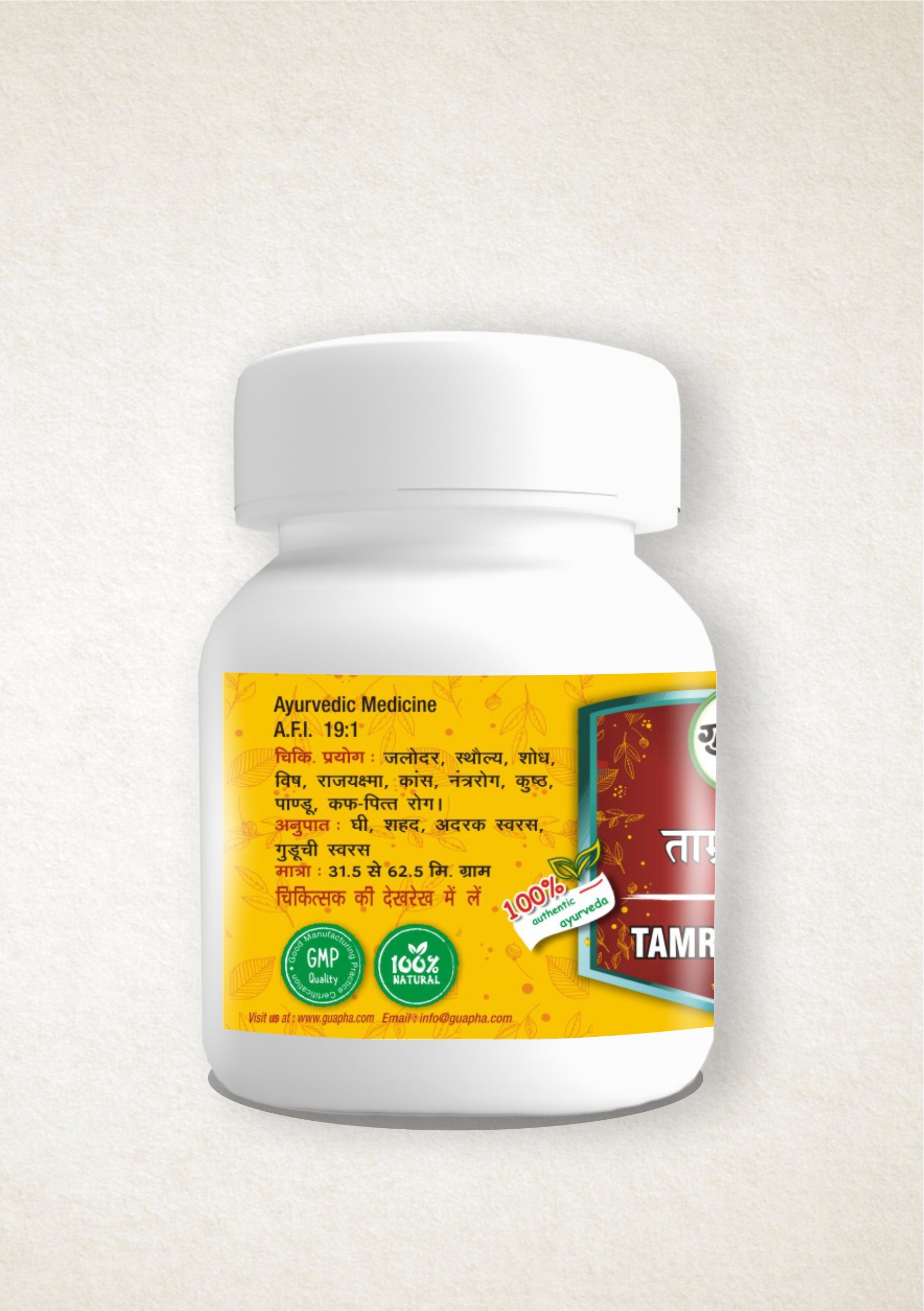 Guapha Ayurveda Tamra Bhasma is a traditional Ayurvedic formulation made from purified copper, known for its numerous health benefits. This natural remedy supports overall wellness by enhancing digestion, boosting immunity, and promoting healthy skin. Rich in trace minerals, Tamra Bhasma aids in balancing the body's doshas, making it ideal for maintaining harmony within. Its detoxifying properties help eliminate toxins and improve metabolic functions. Additionally, this product supports cardiovascular health and strengthens the immune system. With careful preparation, Guapha Ayurveda Tamra Bhasma is designed for those seeking a holistic approach to health. Experience the ancient wisdom of Ayurveda with our premium copper bhasma.